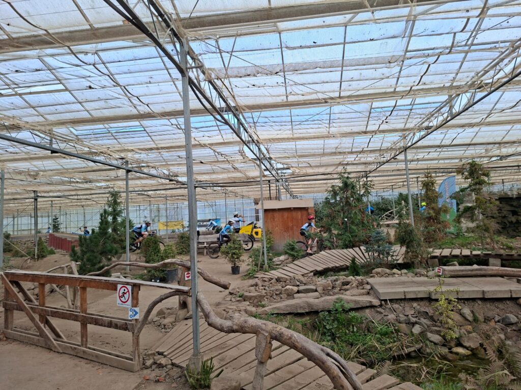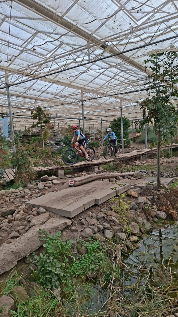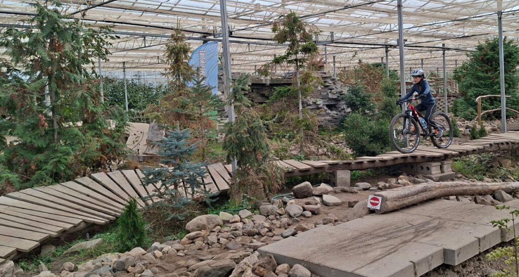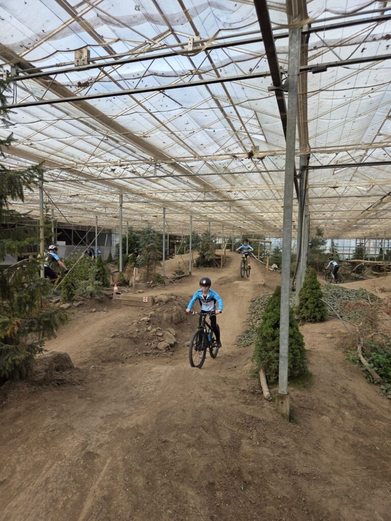 Zodra je binnenkomt in die enorme kas vol bochten, heuvels en houten North Shores, krijg je meteen zin om over het parcours te rijden. Het parcours zit vol verrassingen: rock gardens, drops in verschillende hoogtes en kombochten waar je steeds iets harder durft te gaan. Iedereen vond zijn eigen uitdaging, van de kleinste rijders tot de fanatieke ouders die stiekem net zo fanatiek meededen.